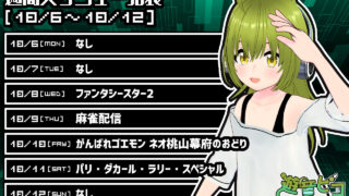 配信スケジュール 10/6~10/12の配信スケジュール ※いずれも22時過ぎ頃から開始今週は通常通りの配信日となります。※9月下旬よりボイチェン勢になりました金曜と土曜はそれぞれリクエストを頂いた「がんばれゴエモン ネオ桃山幕府のおどり」「パリ・ダカール・ラリー・スペシャル」をプレイする予定です... 2025.10.07 配信スケジュール