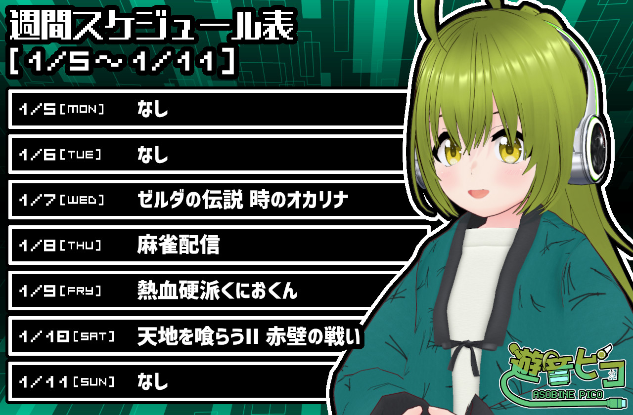 1/5~1/11の配信スケジュール 配信スケジュール X Facebook はてブ LINE コピー 2026.01.07 ※いずれも22時過ぎ頃から開始 今週は通常通りの配信日です。 金曜と土曜はそれぞれリクエストを頂いた「熱血硬派くにおくん」と「天地を喰らうII」をプレイする予定です。 天地を喰らうIIはSteamのリモートプレイ機能を使ってみんなと一緒にプレイしたいと思ってます。今度こそ曹操を倒せ!!