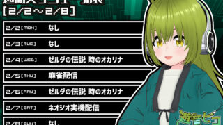 配信スケジュール 2/2~2/8の配信スケジュール ※いずれも22時過ぎ頃から開始今週は通常通りの配信日です。土曜のタイトル自由枠は久々にネオジオ実機の配信をしたいと思っています。ガロスペや龍虎2、クイズ大捜査線あたりが出来ればいいかなーと考えてます。 2026.02.03 配信スケジュール